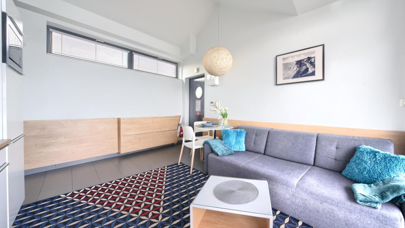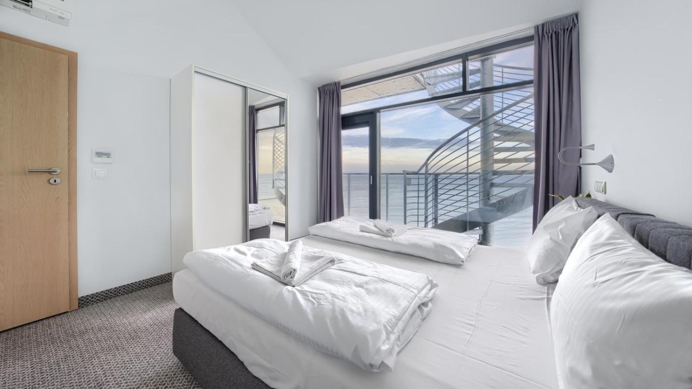 Apartament z 1 sypialnią, widokiem na morze i tarasem. This air-conditioned apartment consists of 1 living room, 1 separate bedroom and 1 bathroom with a bath. Guests can make meals in the kitchenette that is equipped with a stovetop, a refrigerator, a dishwasher and kitchenware. Featuring a balcony with sea views, this apartment also provides a seating area and a flat-screen TV. The unit offers 2 beds. Apartament - 4 osobowy. Powierzchnia pokoju ok.: 38 mkw.
